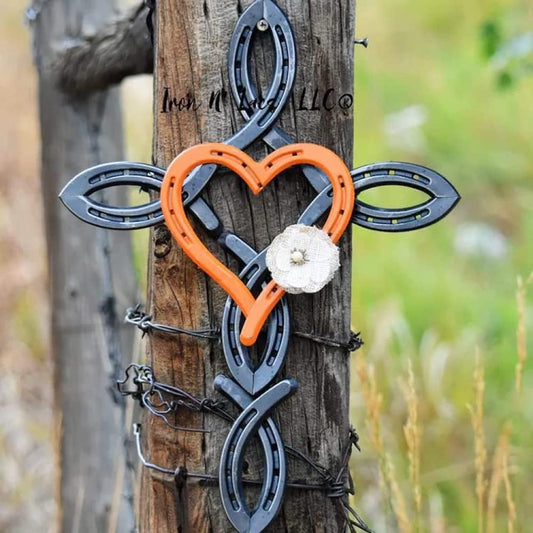 Handcrafted Horseshoe Cross with Heart – Rustic Metal Wall Art of Faith & Love